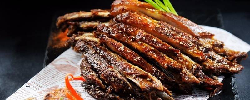 2、手撕羊排:造型美观,酥香可口。肥而不腻,肉制松软,绝无羊肉膻味。做法:将羊排每根砍成5厘米长的段,用香葱、姜、精盐、味精、料酒腌渍2小时。姜、蒜籽切末,红椒切米,香葱切花。