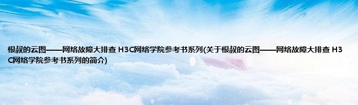 大家好,根叔的云图——网络故障大排查 H3C网络学院参考书系列,关于根叔的云图——网络故障大排查 H3C网络学院参考书系列的简介很多人还不知道,现在让我们一起来看看吧!