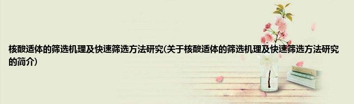本文关于核酸适体的筛选机理及快速筛选方法研究的简介就讲解完毕,希望对大家有所帮助。