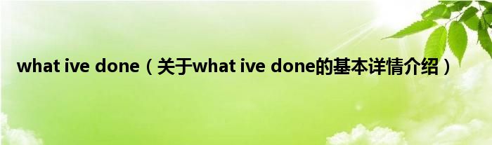 本文关于what ive done的基本详情介绍就讲解完毕,希望对大家有所帮助。