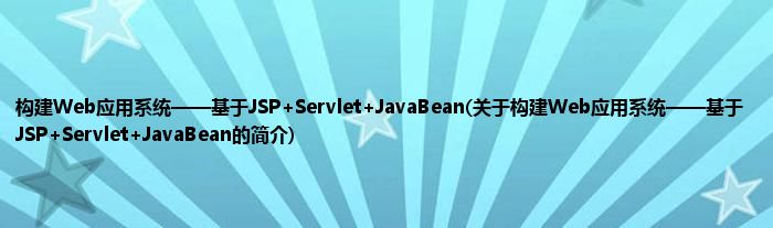 构建Web应用系统——基于JSP+Servlet+JavaBean(关于构建Web应用系统——基于JSP+Servlet+JavaBean的简介)
