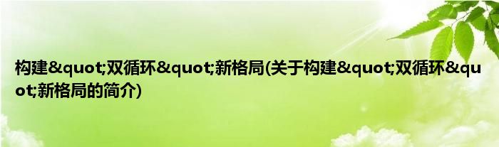 本文关于构建"双循环"新格局的简介就讲解完毕,希望对大家有所帮助。