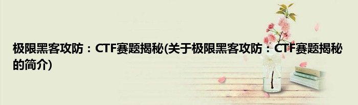 本文关于极限黑客攻防:CTF赛题揭秘的简介就讲解完毕,希望对大家有所帮助。