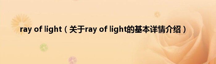 本文关于ray of light的基本详情介绍就讲解完毕,希望对大家有所帮助。