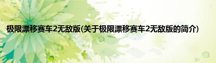 本文关于极限漂移赛车2无敌版的简介就讲解完毕,希望对大家有所帮助。