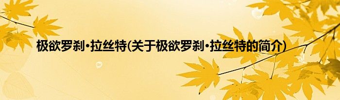 大家好,极欲罗刹·拉丝特,关于极欲罗刹·拉丝特的简介很多人还不知道,现在让我们一起来看看吧!
