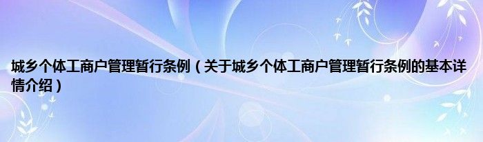 本文关于城乡个体工商户管理暂行条例的基本详情介绍就讲解完毕,希望对大家有所帮助。