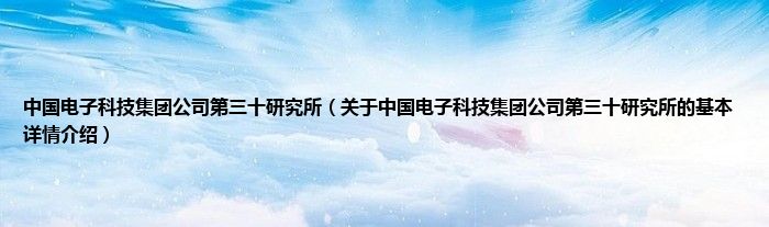 中国电子科技集团公司第三十研究所(关于中国电子科技集团公司第三十研究所的基本详情介绍)