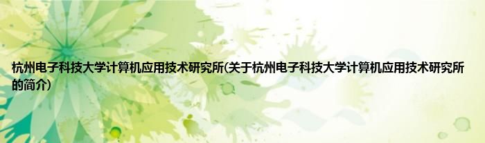 本文关于杭州电子科技大学计算机应用技术研究所的简介就讲解完毕,希望对大家有所帮助。