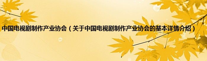 本文关于中国电视剧制作产业协会的基本详情介绍就讲解完毕,希望对大家有所帮助。
