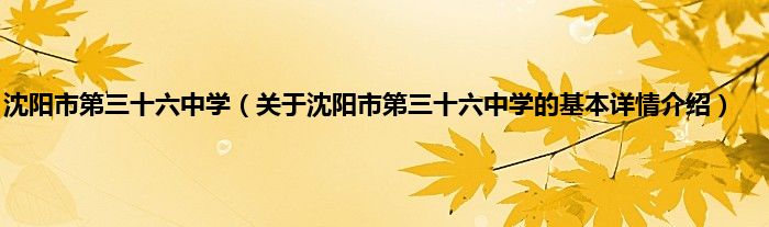 本文关于沈阳市第三十六中学的基本详情介绍就讲解完毕,希望对大家有所帮助。