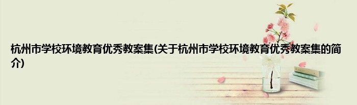大家好,杭州市学校环境教育优秀教案集,关于杭州市学校环境教育优秀教案集的简介很多人还不知道,现在让我们一起来看看吧!