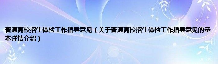 本文关于普通高校招生体检工作指导意见的基本详情介绍就讲解完毕,希望对大家有所帮助。