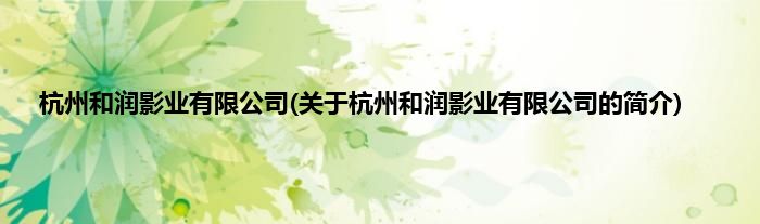 本文关于杭州和润影业有限公司的简介就讲解完毕,希望对大家有所帮助。