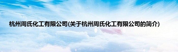本文关于杭州周氏化工有限公司的简介就讲解完毕,希望对大家有所帮助。