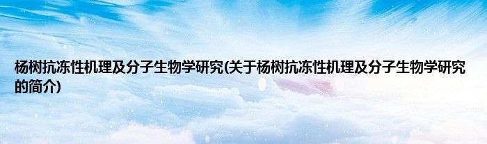 大家好,杨树抗冻性机理及分子生物学研究,关于杨树抗冻性机理及分子生物学研究的简介很多人还不知道,现在让我们一起来看看吧!