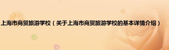 本文关于上海市商贸旅游学校的基本详情介绍就讲解完毕,希望对大家有所帮助。