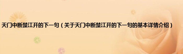 本文关于天门中断楚江开的下一句的基本详情介绍就讲解完毕,希望对大家有所帮助。