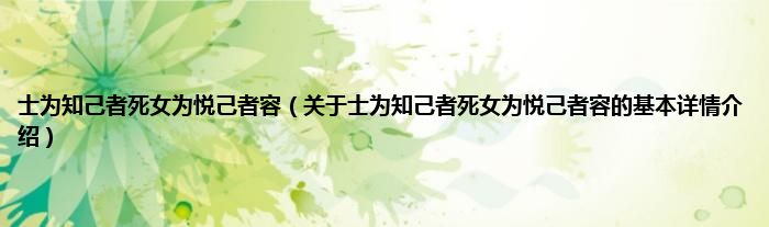 本文关于士为知己者死女为悦己者容的基本详情介绍就讲解完毕,希望对大家有所帮助。
