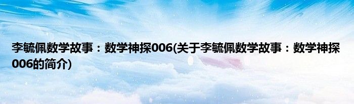 本文关于李毓佩数学故事:数学神探006的简介就讲解完毕,希望对大家有所帮助。