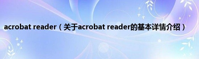 本文关于acrobat reader的基本详情介绍就讲解完毕,希望对大家有所帮助。