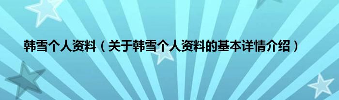本文关于韩雪个人资料的基本详情介绍就讲解完毕,希望对大家有所帮助。