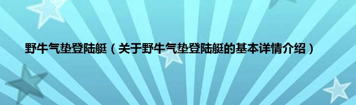 大家好我是小蝌蚪,野牛气垫登陆艇,关于野牛气垫登陆艇的基本详情介绍很多人还不知道,那么现在让我们一起来看看吧!