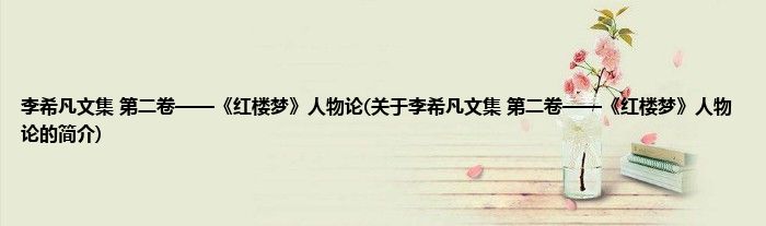 本文关于李希凡文集 第二卷——《红楼梦》人物论的简介就讲解完毕,希望对大家有所帮助。