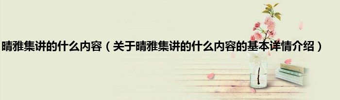 本文关于晴雅集讲的什么内容的基本详情介绍就讲解完毕,希望对大家有所帮助。