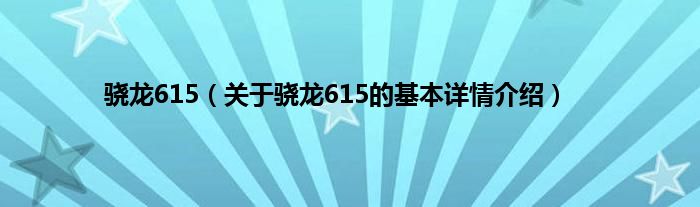 大家好我是小蝌蚪,骁龙615,关于骁龙615的基本详情介绍很多人还不知道,那么现在让我们一起来看看吧!