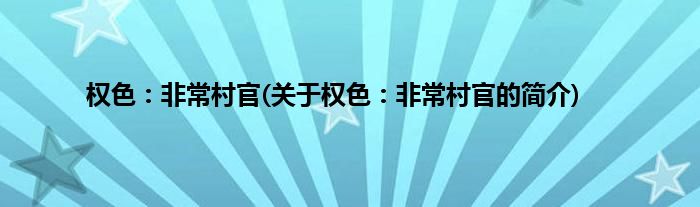 本文关于权色:非常村官的简介就讲解完毕,希望对大家有所帮助。