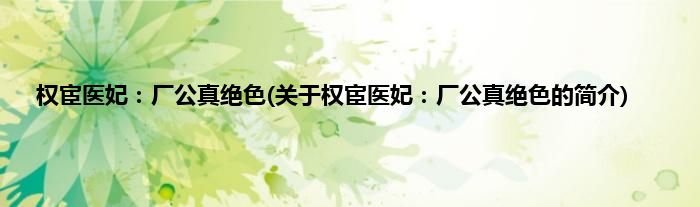 大家好,权宦医妃:厂公真绝色,关于权宦医妃:厂公真绝色的简介很多人还不知道,现在让我们一起来看看吧!