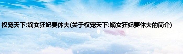 大家好,权宠天下:嫡女狂妃要休夫,关于权宠天下:嫡女狂妃要休夫的简介很多人还不知道,现在让我们一起来看看吧!