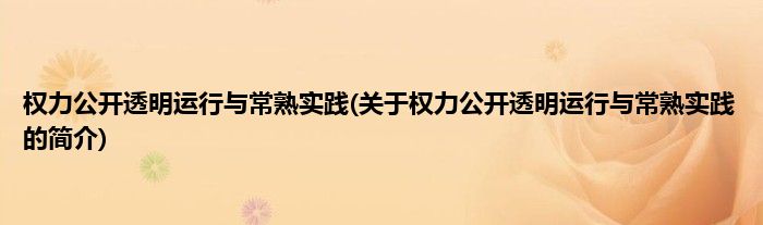 本文关于权力公开透明运行与常熟实践的简介就讲解完毕,希望对大家有所帮助。
