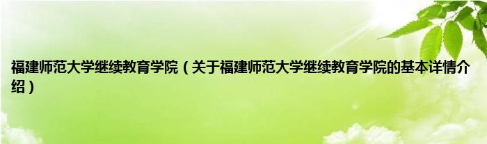 本文关于福建师范大学继续教育学院的基本详情介绍就讲解完毕,希望对大家有所帮助。