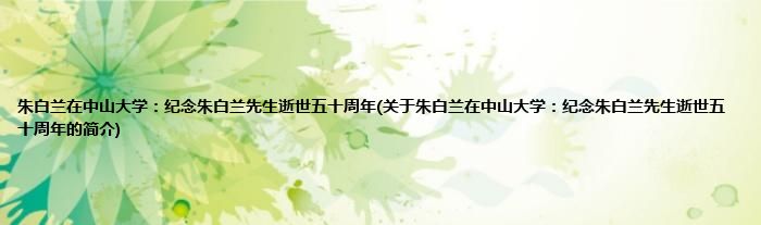 大家好,朱白兰在中山大学:纪念朱白兰先生逝世五十周年,关于朱白兰在中山大学:纪念朱白兰先生逝世五十周年的简介很多人还不知道,现在让我们一起来看看吧!