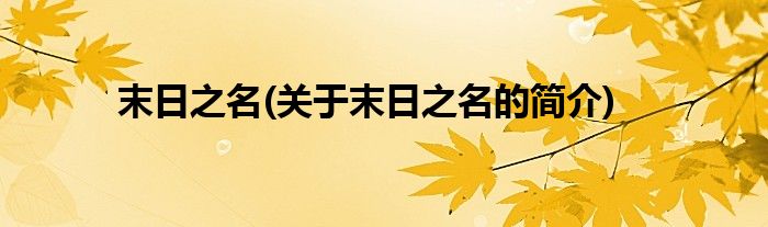 本文关于末日之名的简介就讲解完毕,希望对大家有所帮助。
