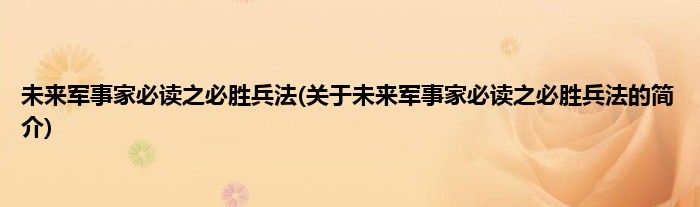 本文关于未来军事家必读之必胜兵法的简介就讲解完毕,希望对大家有所帮助。