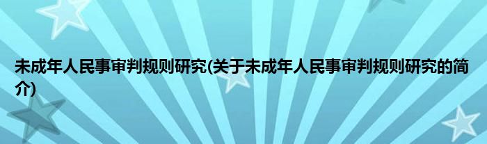 本文关于未成年人民事审判规则研究的简介就讲解完毕,希望对大家有所帮助。