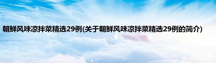 本文关于朝鲜风味凉拌菜精选29例的简介就讲解完毕,希望对大家有所帮助。