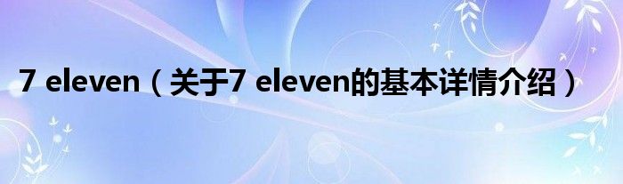 本文关于7 eleven的基本详情介绍就讲解完毕,希望对大家有所帮助。