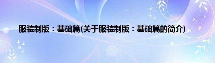 1、 《服装制版:基础篇》是2017年东华大学出版社出版的图书。