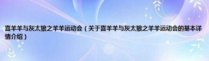 本文关于喜羊羊与灰太狼之羊羊运动会的基本详情介绍就讲解完毕,希望对大家有所帮助。