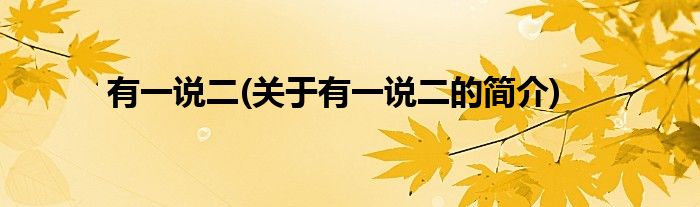 大家好,有一说二,关于有一说二的简介很多人还不知道,现在让我们一起来看看吧!
