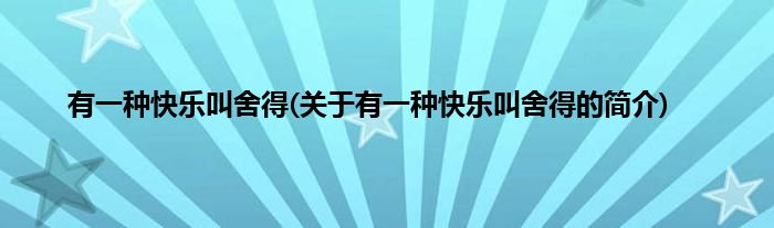 大家好,有一种快乐叫舍得,关于有一种快乐叫舍得的简介很多人还不知道,现在让我们一起来看看吧!