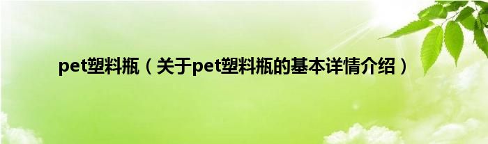 本文关于pet塑料瓶的基本详情介绍就讲解完毕,希望对大家有所帮助。