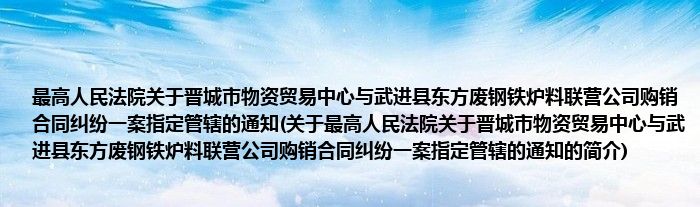 本文关于最高人民法院关于晋城市物资贸易中心与武进县东方废钢铁炉料联营公司购销合同纠纷一案指定管辖的通知的简介就讲解完毕,希望对大家有所帮助。
