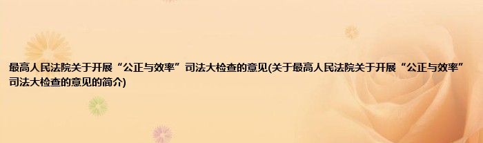 大家好,最高人民法院关于开展“公正与效率”司法大检查的意见,关于最高人民法院关于开展“公正与效率”司法大检查的意见的简介很多人还不知道,现在让我们一起来看看吧!