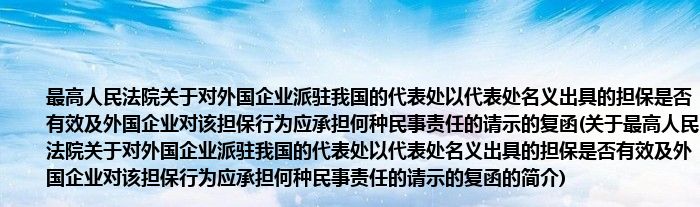 本文关于最高人民法院关于对外国企业派驻我国的代表处以代表处名义出具的担保是否有效及外国企业对该担保行为应承担何种民事责任的请示的复函的简介就讲解完毕,希望对大家有所帮助。