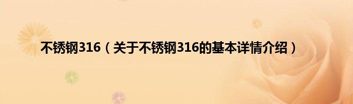 本文关于不锈钢316的基本详情介绍就讲解完毕,希望对大家有所帮助。